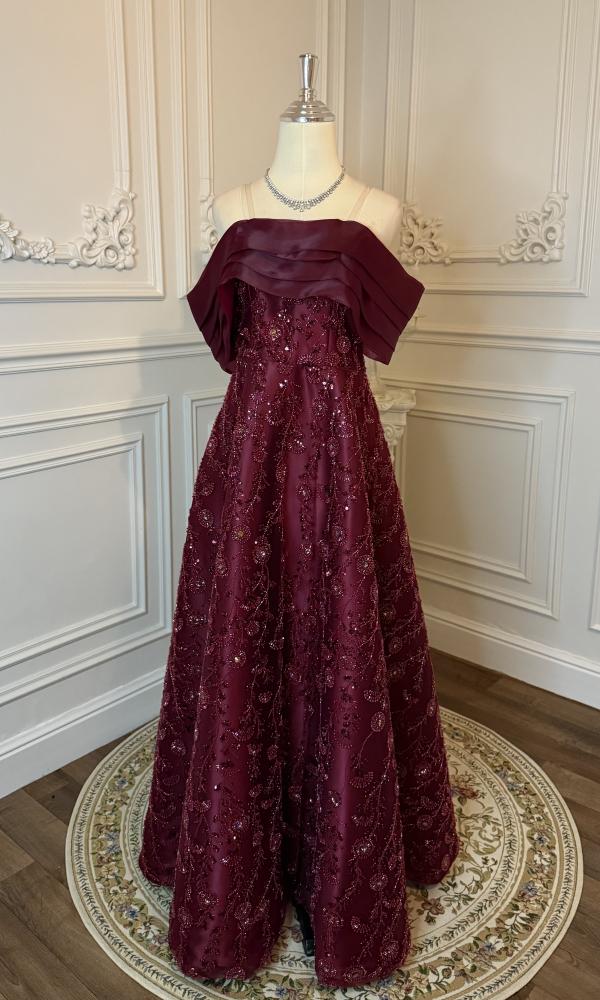 - التطريز: الفستان مزخرف بالكامل بتطريز يدوي لامع